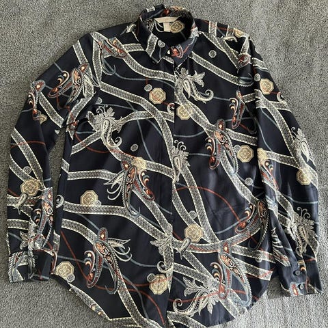 Mycket trevlig skjorta från Filippa K. Hittar inget att anmärka på utöver att tvättlappen/materiallappen tyvärr är bortklippt. Är för liten för mig, så bör få mer kärlek någon annanstans!