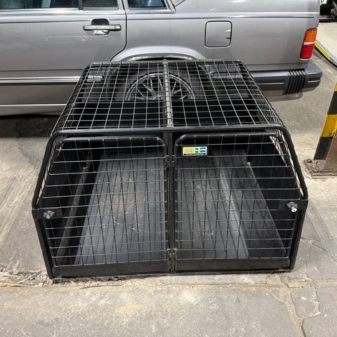 Hundbur för Volvo V60 modellår före 2019, fungerar även i den nya Volvo V60 och i XC60 mått kan ses på Alfta burens hemsida. Har senare år använt buren i en Subaru Outback utan problem. Hundburen är för hela bagageutrymmet med en dörr. Hundburen har också evakueringslucka på baksidan. Buren finns i NV Skåne.