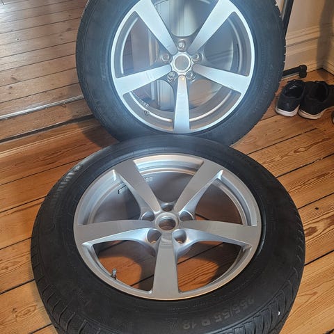 I stort sett helt nya fälgar och däck (gått under 50mil!) för en 1/3 av nypriset, nypris är 37.000kr!