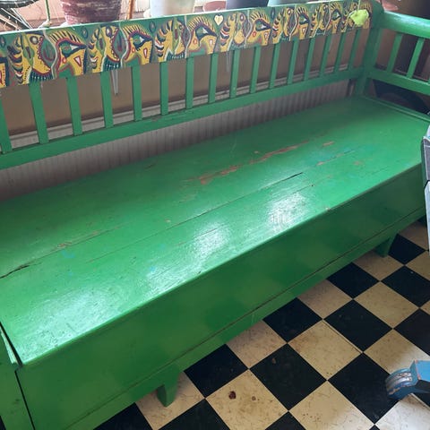 Antik vi utdragbar kökssoffa 1800-tal omklädd 220x52x95cm