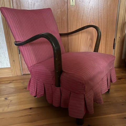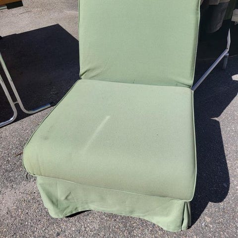 Fåtölj. Mönster: blommor, paradisfåglar. Längd: 100cm, bredd: 90cm, höjd: 80cm.