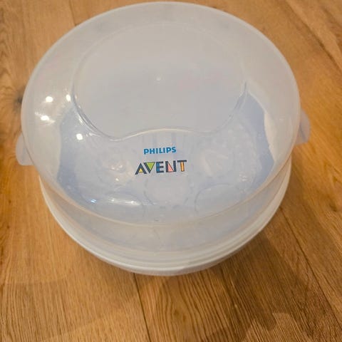 Philips Avent Ångsterilisator för mikro kan användas för att sterilisera nappflaskor och andra produkter som nappar och bröstpumpsdelar. Ångsterilisatorn tar 2 minuter att använda och dödar 99,9 % av bakterier. (Den exakta tiden beror på mikrovågsugnens wattal.) Innehållet hålls sterilt i upp till 24 timmar om locket inte öppnas.