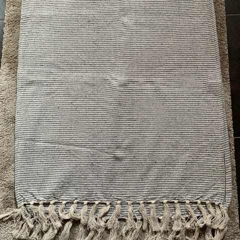 Fint överkast till enkelsäng i beiga toner, ena sidan lite mörkare. Nytvättat parfymfritt, inga djur eller rökare i hemmet. Hämtas på Alnö utanför Sundsvall, kan också skickas.