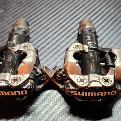Cykelpedaler Shimano PD-M520. Använda 1 säsong. Lite repor men funkar fint.