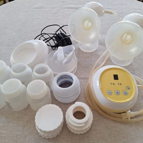 Säljer Medela elektrisk dubbel bröstpump, följer även med en Medela handsfree pumpbustier i storlek S.