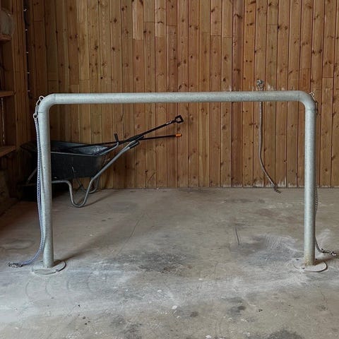 Vacker gammal klockbåge med 5 klockor, 1 arm och en klocka saknas. Muttern som håller fast klockorna i bågen är lite lös och behöver dras åt.
