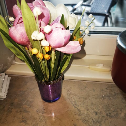 "små, små ord av kärlek sagda varje dag skänker här i livet glädje och behag" Glaslykta, diameter 14, 5 cm. Höjd 19, 5 cm