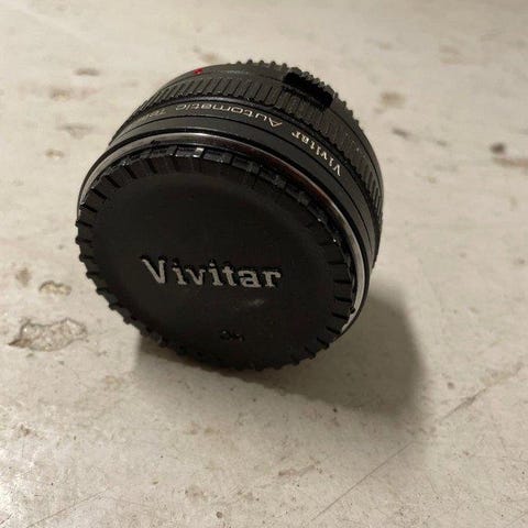 Ett Vivitar VMC 135mm f/3.5 objektiv. Objektivet har en diameter på 49mm.