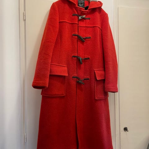 Säljer fin vinterjacka/kappa med huva. Jackan är i bra skick och inte särskilt mycket använd. Se detaljer på bilden. Fina knäppen Materialet är 100% ull. Med en lite varmare tröja under blir den helt perfekt