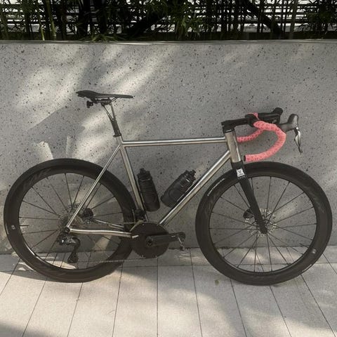 Vector-sadelstolpe, distanser till styret, hållare för cykeldator och flaskor i kolfiber.