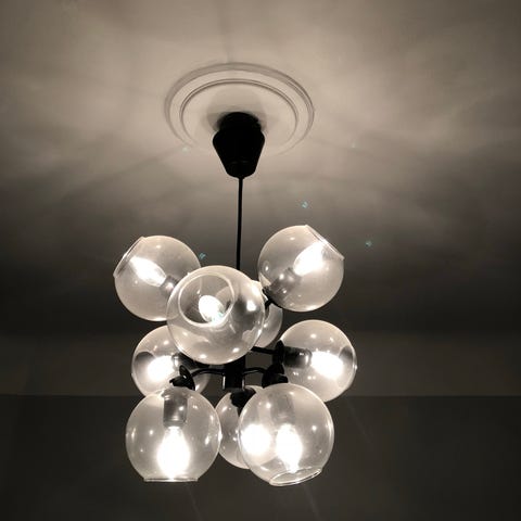 Lampan, påminner om en godisskål eller en blombukett, kan placeras på ett sidobord eller varför inte på golvet. Vi lovar att den kommer göra succé.