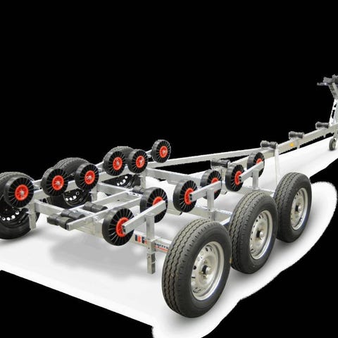 Rejäl båtvagn använd för en Bavaria 35 match, (6 ton, 10,8 m lång och 3,3m bred.
