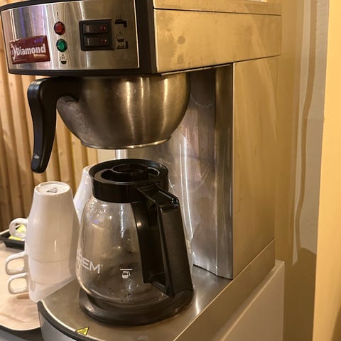 Professionell kaffebryggare från Crem/Coffee Queen med dubbla bryggare och fyra värmeplattor. Två för bryggning och två upptill så att man kan ha två kannor på för underhållsvärme.