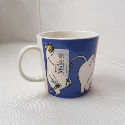 Oanvänd mugg utan etikett. Felfri. Finns i Uppsala för avhämtning eller kan skickas mot fraktkostnad. Vill du köpa fler Mumin saker, kontakta mig innan köpet, samfraktar gärna för billigare frakt.