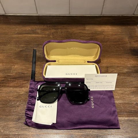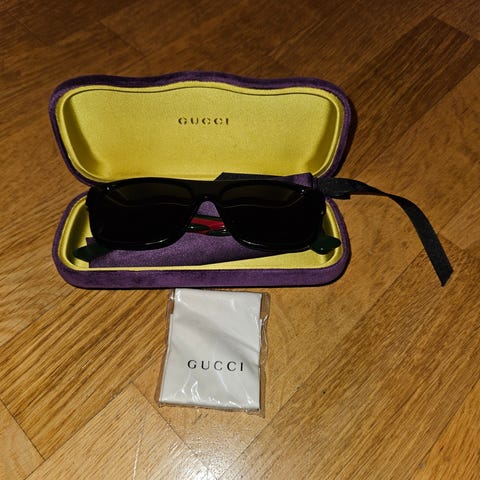 Eleganta Gucci solglasögon med tillhörande fodral och putsduk. Svarta med silver detaljer. I mycket fint skick. Modell GG0029S Finns ej att köpa längre, helt slutsålda och svåra att få tag!!