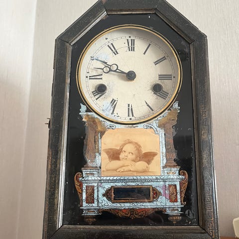 Två stycken bord klockor , den gula funkar bra , den andra med kopa behövs smörjas den är med nyckel måste dra .