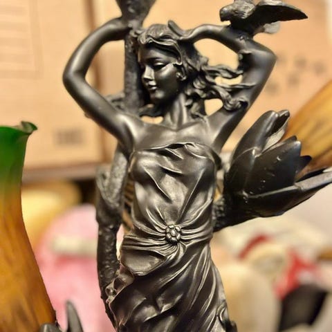 Vacker dekorativ lampstaty, kvinna och barn, med 3 lampor. Höjd 71 cm, bredd 20 cm mellan lamporna.