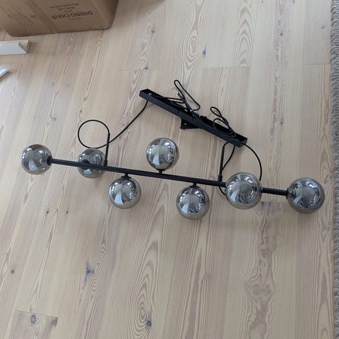 Snygg taklampa i svart metall och med sidor av glas säljes för 500:-