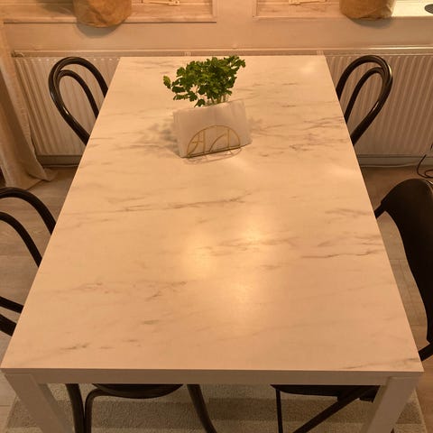 Säljer en fin matbord med riktigt marmor för 500 kr. Längden är 160 cm, bredden är 90 cm och höjden är 74,5 cm 🤗❤️