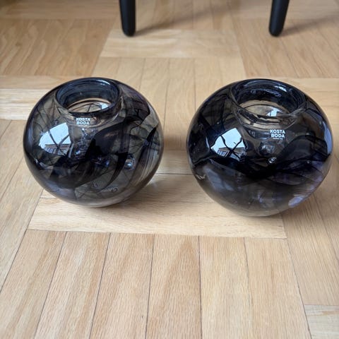 Två stycken vackra glaslyktor i grönt glas. Lyktorna är i bra skick då de inte har använts. De är 9,5 cm i diameter. Kan skickas mot porto.