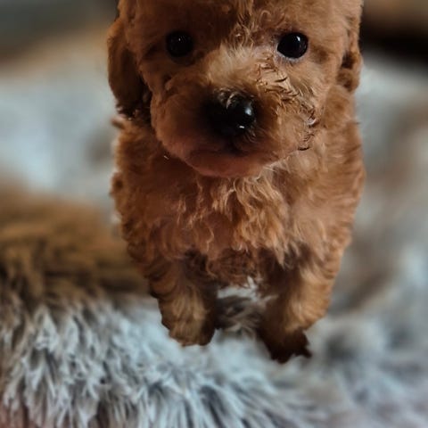 Lite för lycklig vid bebisar, så passar bättre med ändre småbarn som inte knuffas omkull lätt när hon vill gosa.