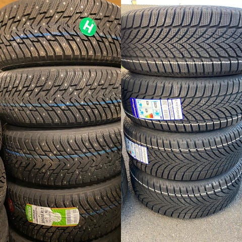 205/60 16 3xNokian hak R3 dubbfri 6mm. 4xGoodyear ca 5mm. 2xHankook 7mm. 1xmichelin 5mm. 450:-/st