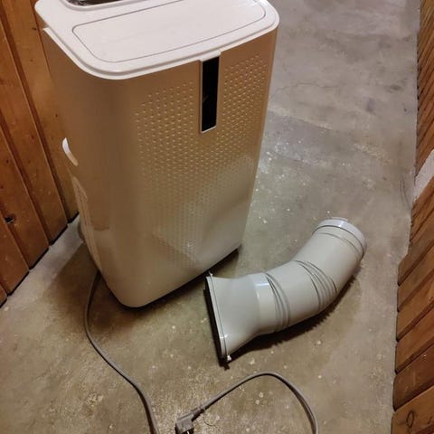 Canvac Q Air Portabel AC är en tyst, smidig och helautomatisk luftkonditionering för behaglig svalka. Den har autodrift, kyldrift, fläktdrift och avfuktningsläge (kräver dräneringsslang som jag tejpat så den sitter bra).