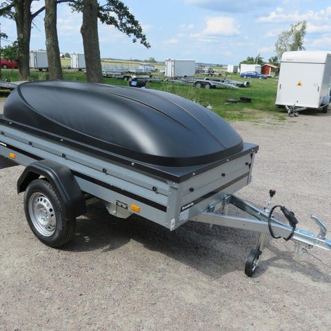 Begagnad EU Trailer Obromsad, Brenderup 1205 SUB 600 med kåpa / Huvtrailer Topp, tippfunktion och Stödhjul.