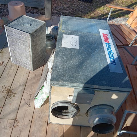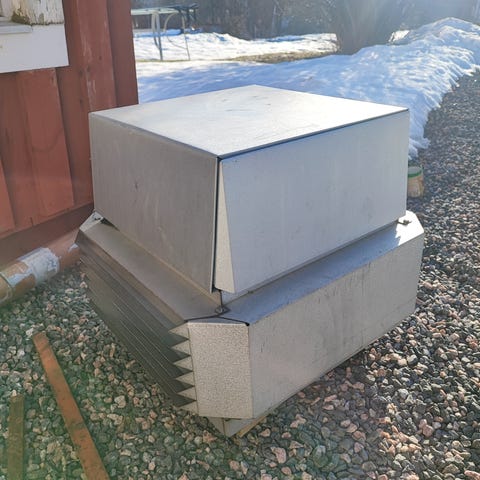 Helt oanvänd skorstensfläkt, fortfarande i lådan.