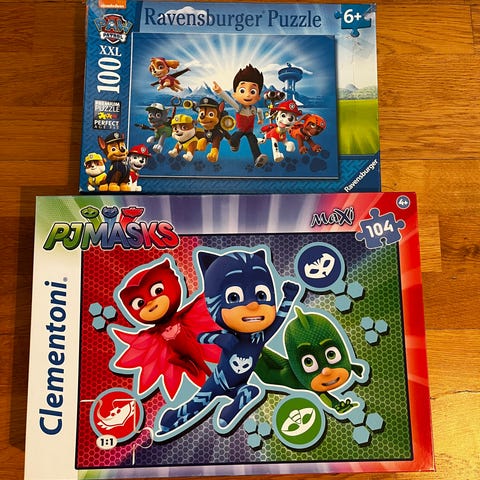 Färgglada pussel med bilder på Kattpojken, Ugglis och Gecko från Pyjamashjältarna. Innehåller 40 stora bitar. Från 3 år.