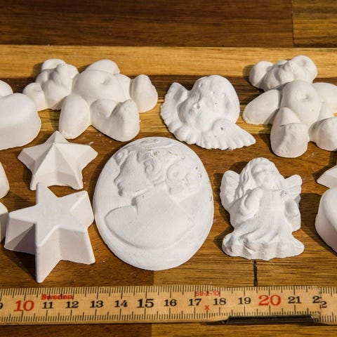 Storlekar upp till ca 6 cm, nallar, stjärnor, hjärta, änglar, came, citroner, snäckor o fisk.