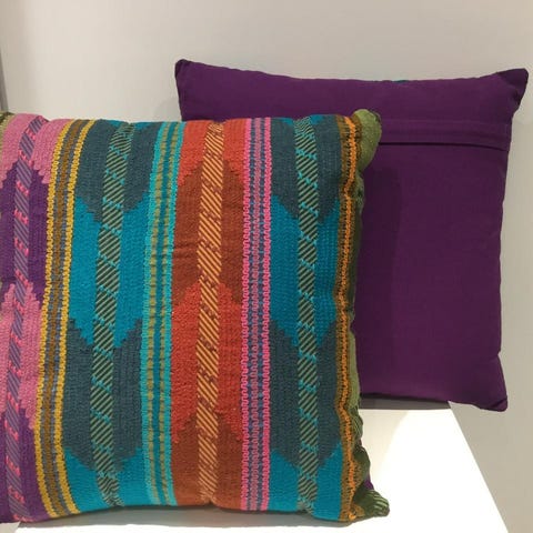2 gröna kuddar med rödaktig kant