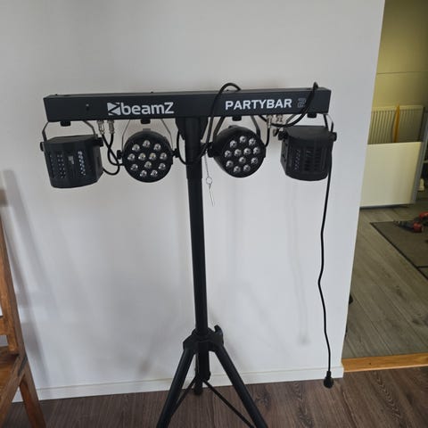 2 st partybar ljusmix + stativ och elkablar med kontroll för att styra inställningar. Ska också tillägga att dom kan vara ljudstyrda så dom följer med musiken.