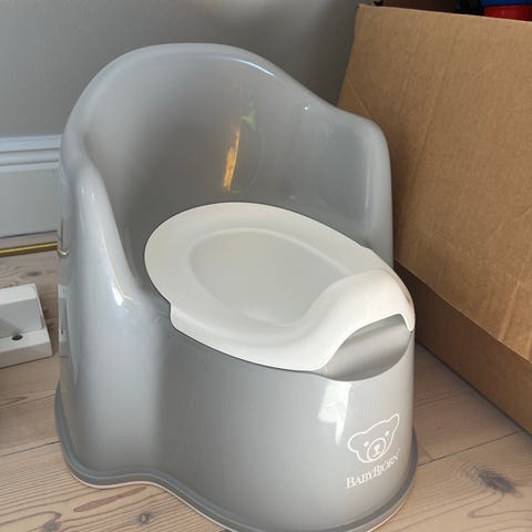Rosa potta från Babybjörn och en toalettsits från IKEA.