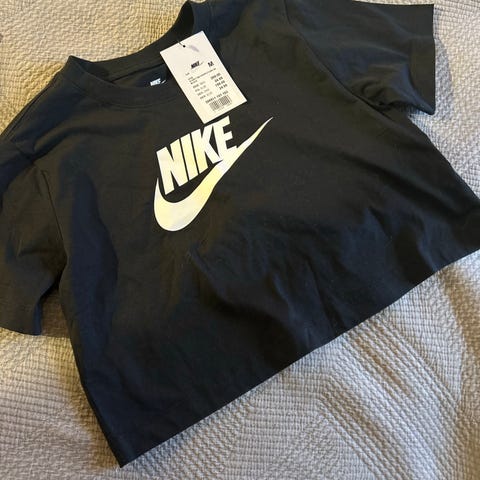 Svart kortare t-shirt från Nike i strl 146/152, tröjan är lite längre där bak.