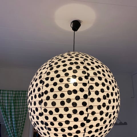 Lampskärmen säljs utan sladd och behöver inte en stålställning inuti som på traditionella rislampor. Skärmen hänger ut sig själv.