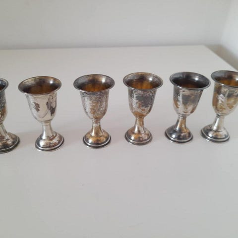Säljer denna bägare i nysilver. Höjd 10cm. Den är försedd med stämplar men tyvärr är dom svåra att utläsa. Se bild.