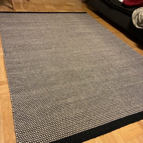 Ljusgrå matta i stl 200x300cm och materialet polypropen. Rök- och djurfritt hem
