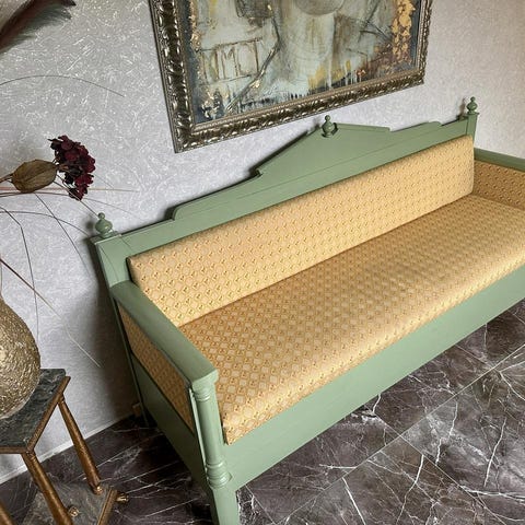 Gammal renoverad kökssoffa och förvandlat till bänk.