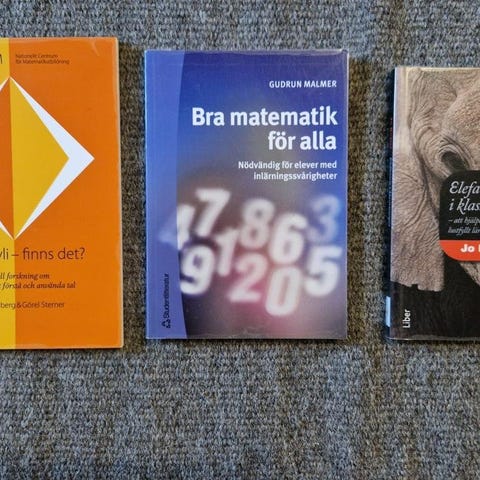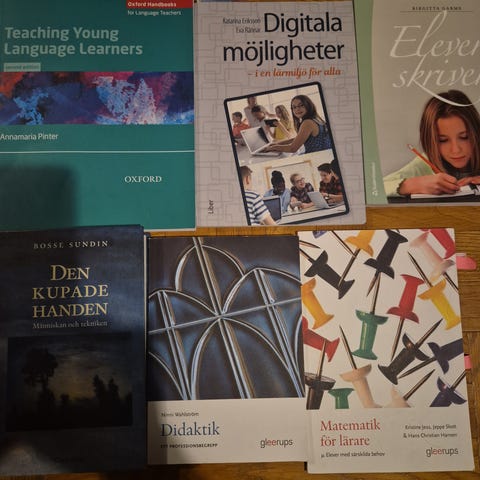 Har gått igenom böckerna vi har hemma och säljer ett antal inom olika ämnesområden. Denna annons gäller lärande, elevhälsa och skolutveckling. Bra skick, varierande titlar. Hämtas i Stockholm eller skickas mot frakt.