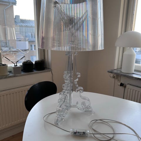Philippe Starcks vackra lampa. Inbyggd dimmer. Ljuskällor följer med. Finns på Kungsholmen.