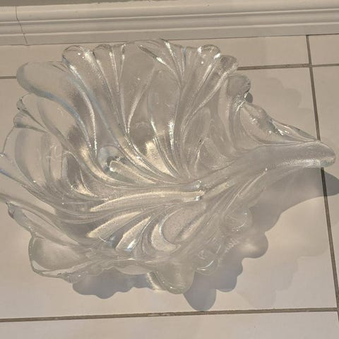 Svart pampig högblank skål i glas. 40cm i diameter och 10cm hög.