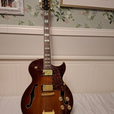 Säljes halv akustisk elgitarr Alden Western star 2 i mycket fint skick, pris 3000 och den finns att hämta i Nybro Småland detaljer info:Precis som Western Star 1, men med en thinline-kropp med double cutaway och ett traditionellt solitt centerblock för att minska feedback och öka sustain. Utrustad med Nashville Star-humbuckers har Western Star 2 en mer rockorienterad ljudbild än sin motsvarighet med single cutaway."
