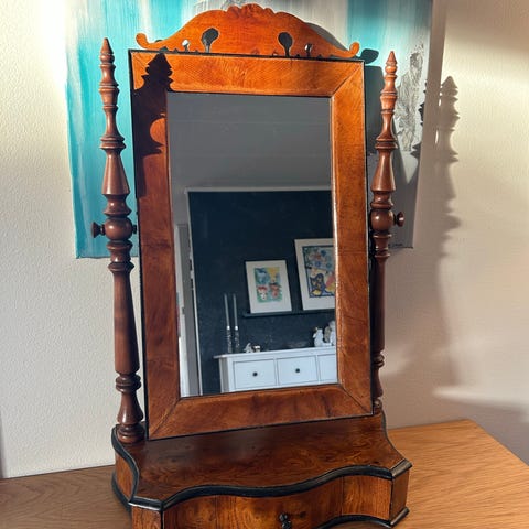 Antik Spegel / pigtittare i benvit färg, fint skick