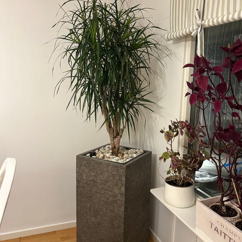 Planteringskärlen är tillverkade i glasfiberarmerad plast som sedan belagts med svart/grå kvartssand.