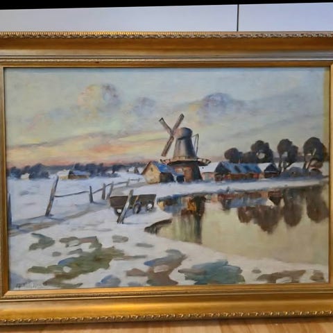 Oljemålning Handmålad tavla J-Å Enghed 1985 motiv väderk