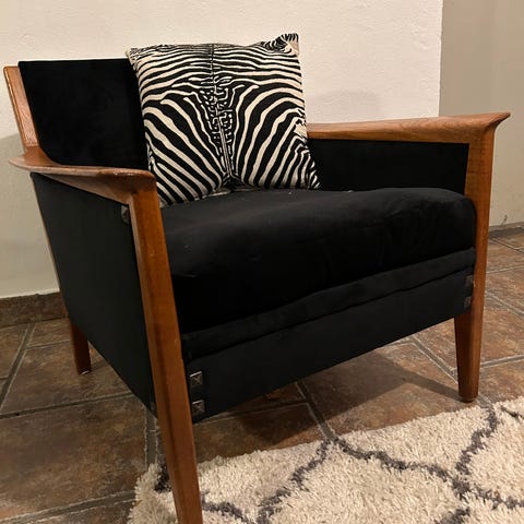 Använda med revor i armstöd, men otroligt sköna att liggsitta i. Slutet 1800 tal troligen. Värda att omvårda.