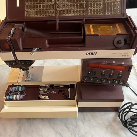 Själva bordet är väldigt fin utför med två skjut delar ovanpå som man kan öppna åt sidorna och där själva sytillbehör kan förvaras.