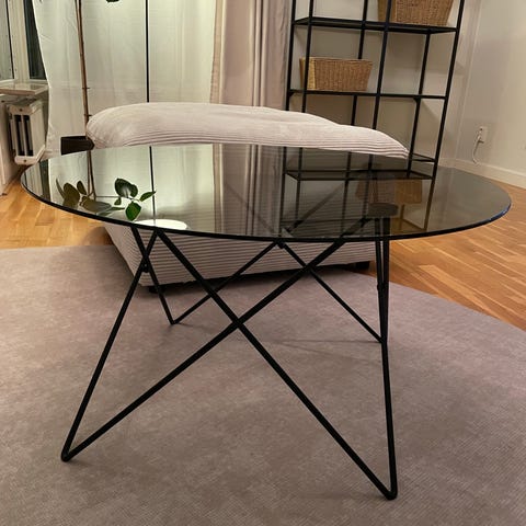 Skrivbord med friliggande glasskiva.