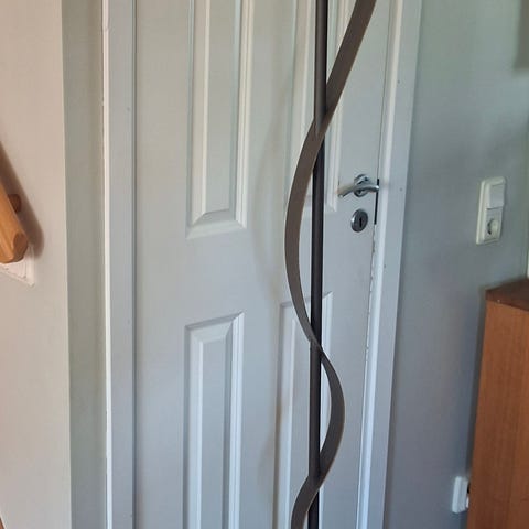 Av stål. 180 cm. En stor lamslående och en liten hänger ner. Finns i Lövånger